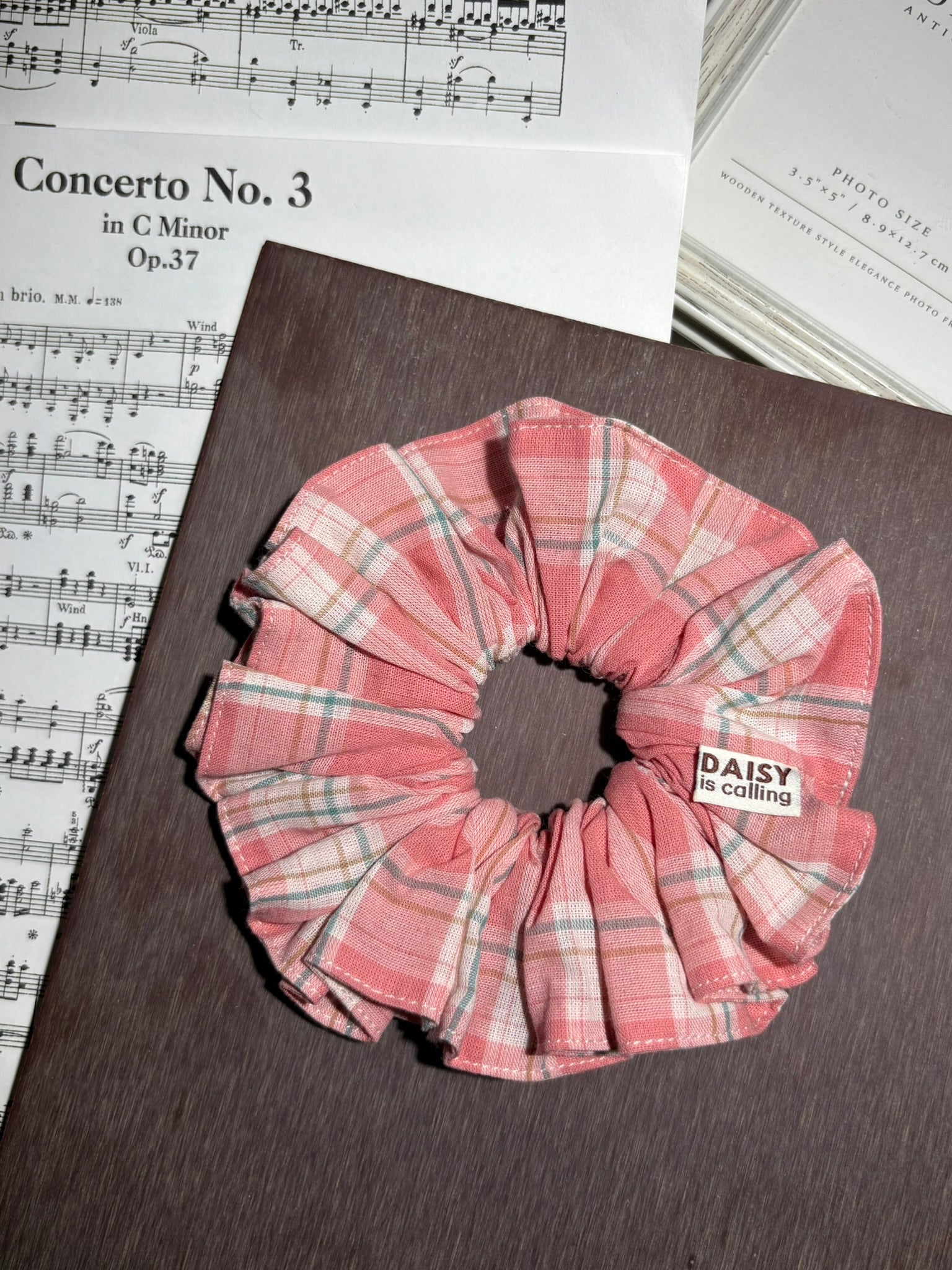 A dusty rose plaid with soft hints of green and cream, like scones, jam, and slow afternoon chats.